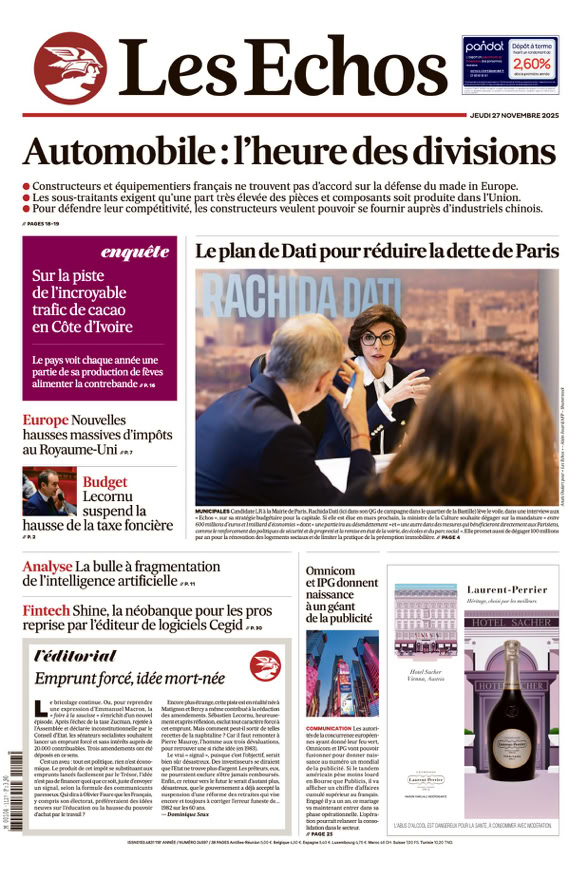 • Nvidia franchit le cap des 5.000 milliards de capitalisation boursière, une première Nvidia est devenue mercredi la première société à dépasser les 5.000 milliards de dollars de capitalisation boursière, lors d’une semaine déterminante pour la Big Tech américaine Édito et analyse p. 2