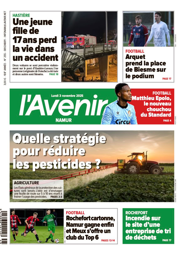 + p. 13 En bref Bruxelles Négociations : Bouchez invite les six partis à une plénière ce lundi | Ixelles Un sans-abri retrouvé mort dans la station Porte de Namur | Forest-Saint-Gilles Un bus se crashe et provoque une grosse fuite de carburant | Etterbeek Trafic de cocaïne : près de 120 000 euros en cash saisis.