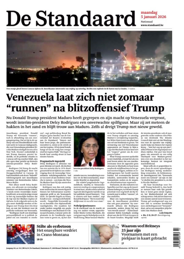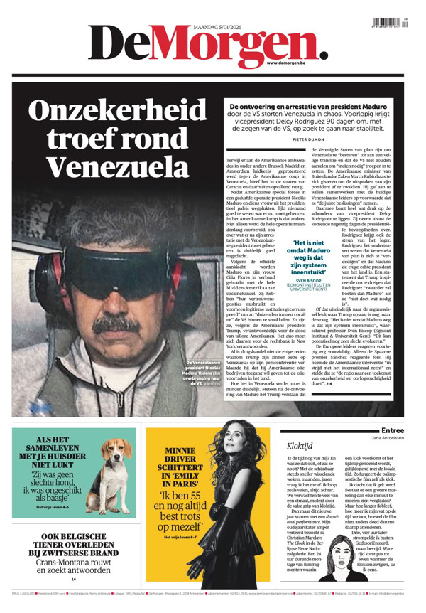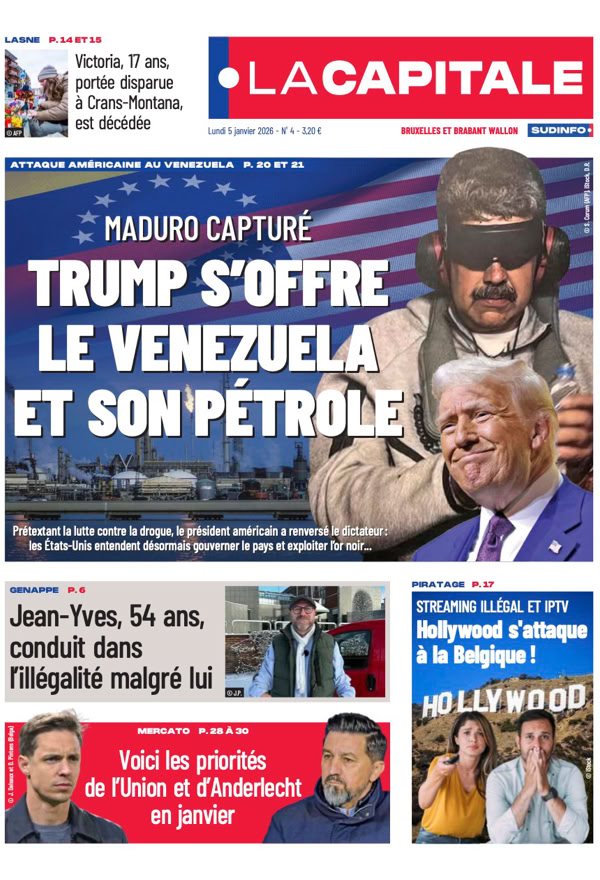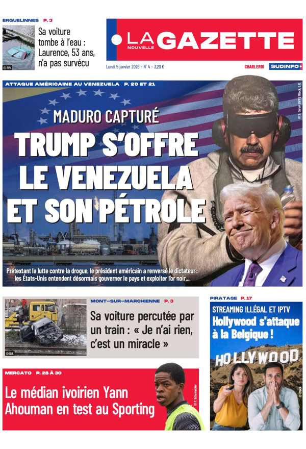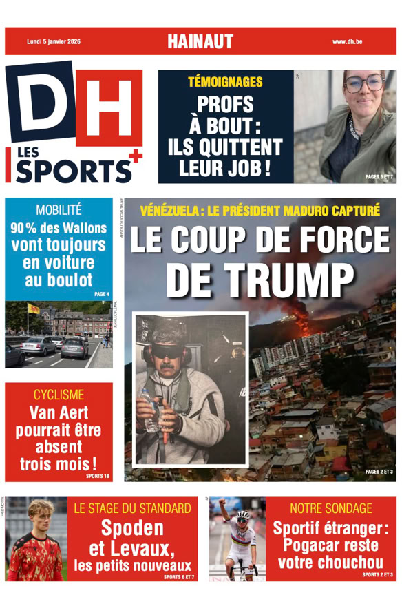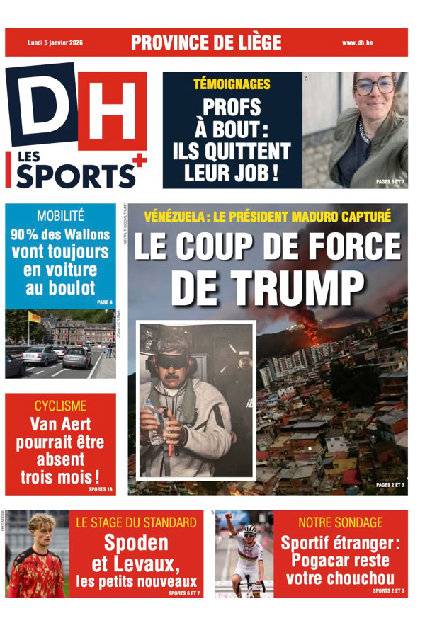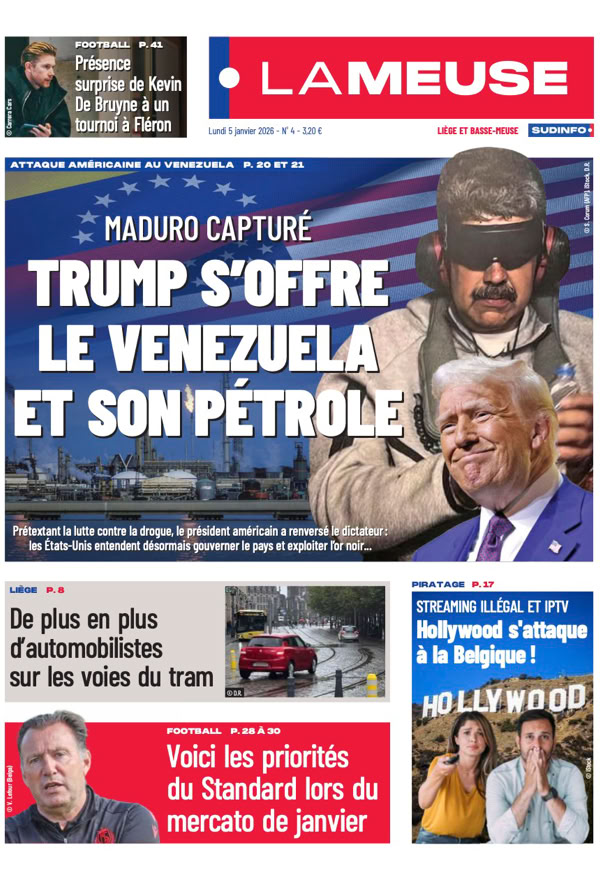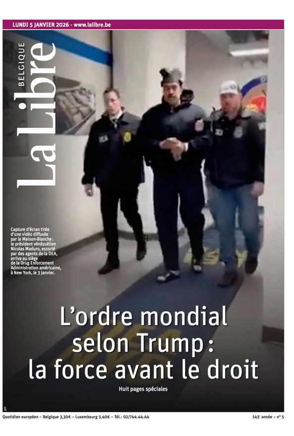 • Maduro capturé L’impérialisme selon Trump L’attaque américaine contre le Venezuela et l’enlèvement de Nicolás Maduro, ce weekend, ont sidéré le monde entier. Le président vénézuélien déchu comparaîtra lundi devant un juge de New York. Après ce coup de force, la question est désormais de savoir jusqu’où ira Donald Trump qui ne cesse de chambouler l’ordre mondial depuis son retour à la Maison-Blanche 4 pages spéciales