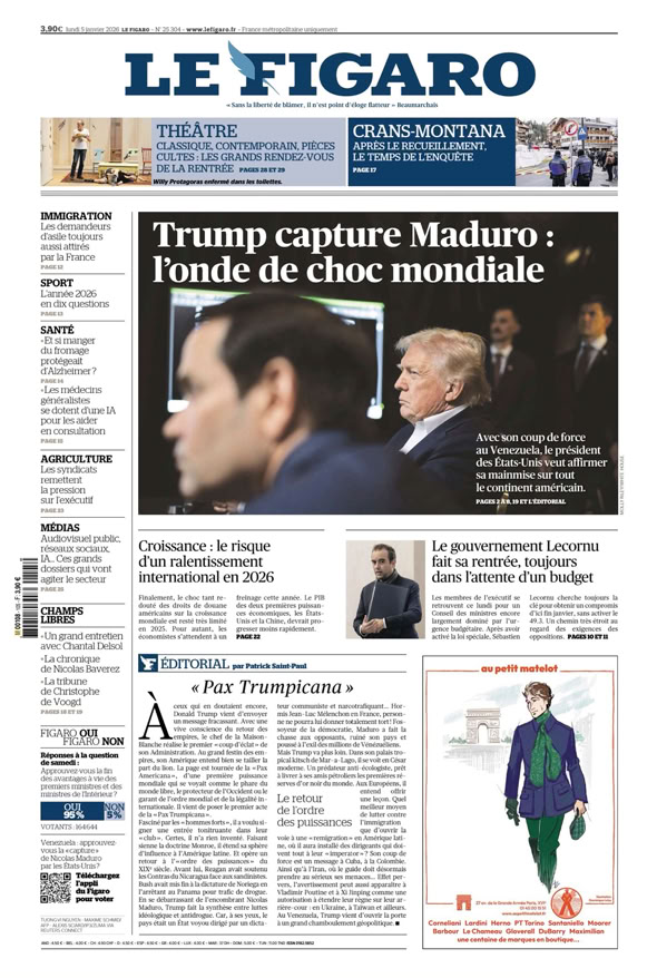 • Vénézuela : le président Maduro capturé Le coup de force de Trump p. 2 - 3