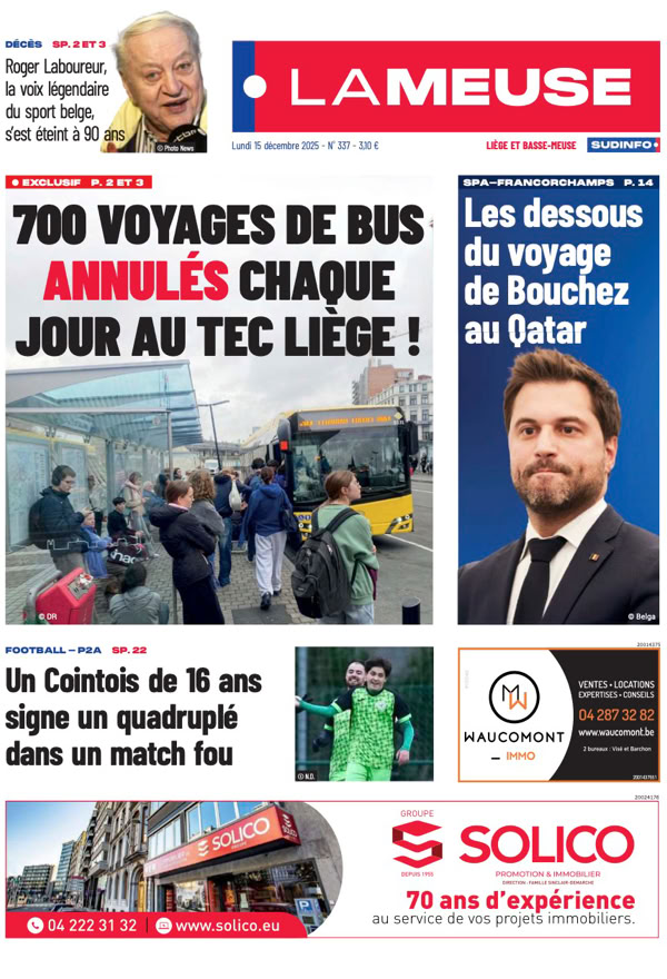 • Décès Roger Laboureur, la voix légendaire du sport belge, s’est éteint à 90 ans p. 2