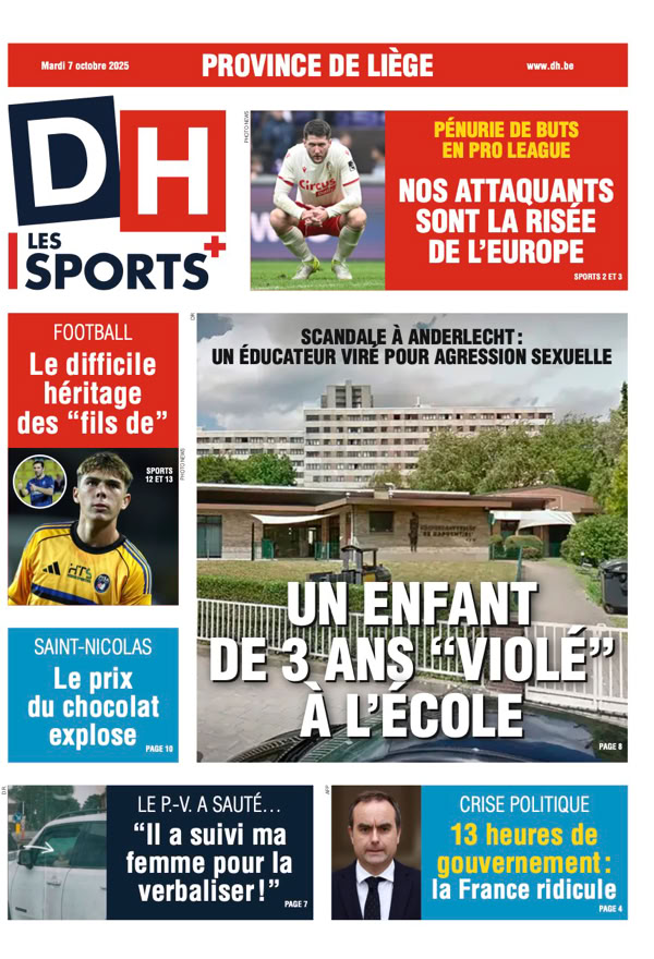 • Scandale à Anderlecht : un éducateur viré pour agression sexuelle Un enfant de 3 ans “violé” à l’école p. 8