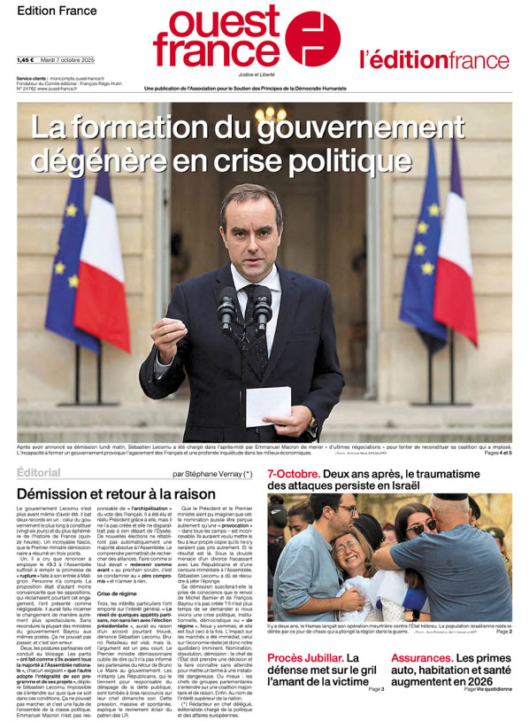 • Sébastien Lecornu, de la démission à la mission de la dernière chance p. 14-15 & Édito p. 2