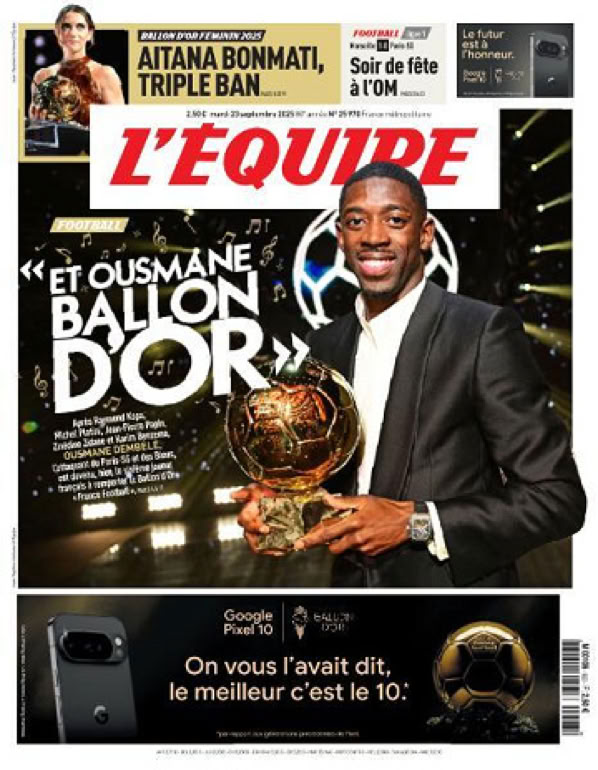 • Ballon d’Or Ousmane Dembel couronné p. sports 2 - 4