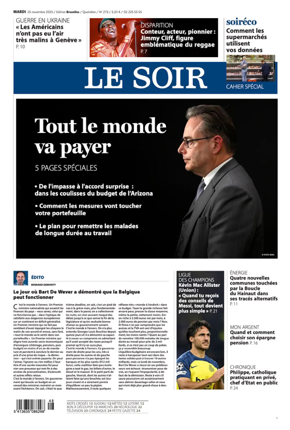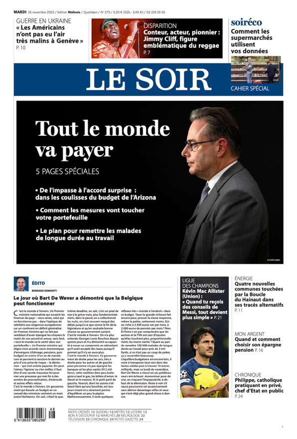 • Tout le monde va payer • De l'impasse à l'accord surprise : dans les coulisses du budget de l’Arizona • Comment les mesures vont toucher votre portefeuille • Le plan pour remettre les malades de longue durée au travail 5 pages spéciales