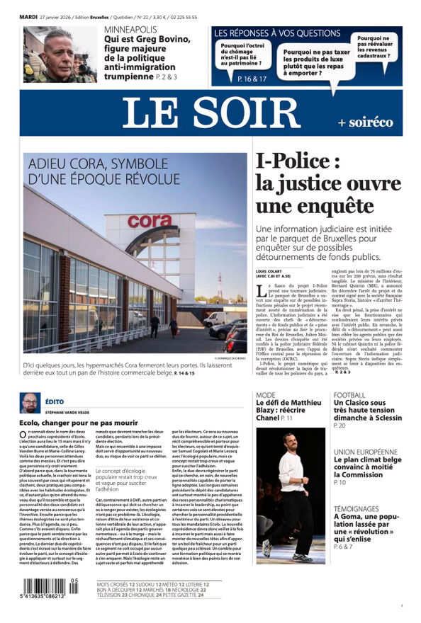 • I-Police : la justice ouvre une enquête Une information judiciaire est initiée par le parquet de Bruxelles pour enquêter sur de possibles détournements de fonds publics p. 2 & 3