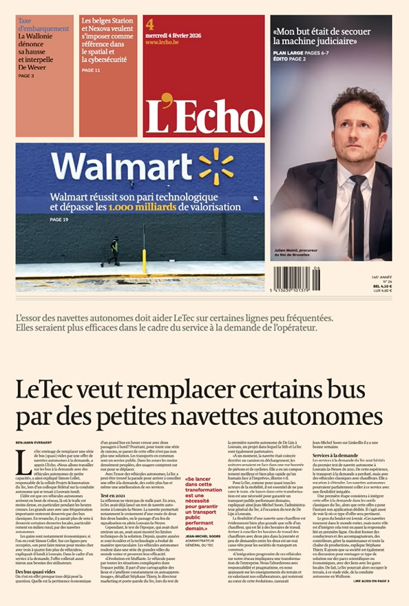 • LeTec veut remplacer certains bus par des petites navettes autonomes L’essor des navettes autonomes doit aider Le Tec sur certaines lignes peu fréquentées. Elles seraient plus efficaces dans le cadre du service à la demande de l’opérateur p. 1 & 3