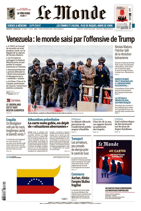 • Le Groenland dans le viseur de Trump Quelques heures à peine après la capture illégale du président vénézuélien Nicolás Maduro, Donald Trump a réaffirmé sa convoitise pour le Groenland. Ses menaces d’annexer l’île sont de plus en plus pressantes 4 pages