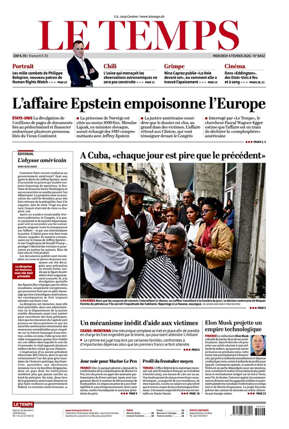 • Affaire Epstein L’onde de choc qui fait trembler les capitales p. 4 & 5