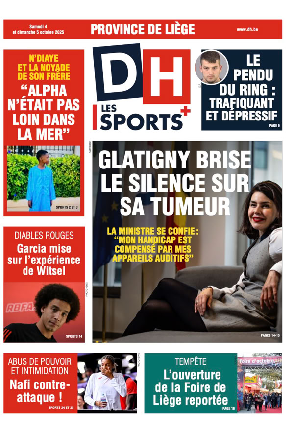• Glatigny brise le silence sur sa tumeur La ministre se confie : “mon handicap est compensé par mes appareils auditifs” p. 14 - 15