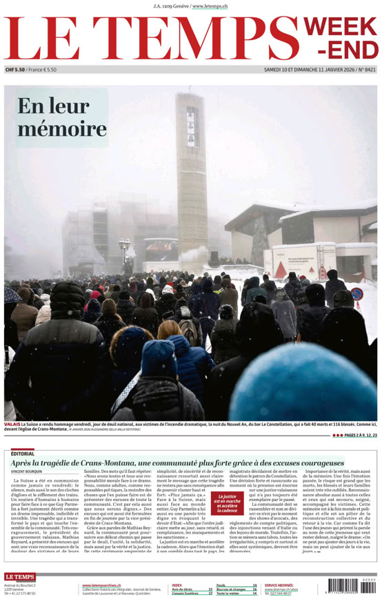• Crans-Montana : un hommage aux victimes et une enquête qui avance Des excuses et une détention p. 4 et 5