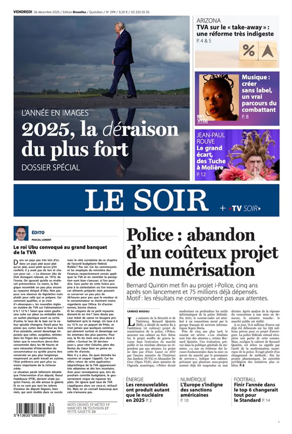 • Les arbitrages de Noël du gouvernement De Wever p. 8 & Édito p. 2