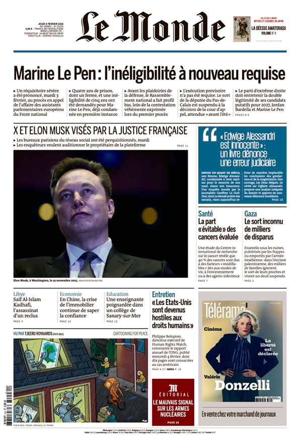 • Trump face à la justice, une première historique p. 2 - 3 et Horizons p. 15