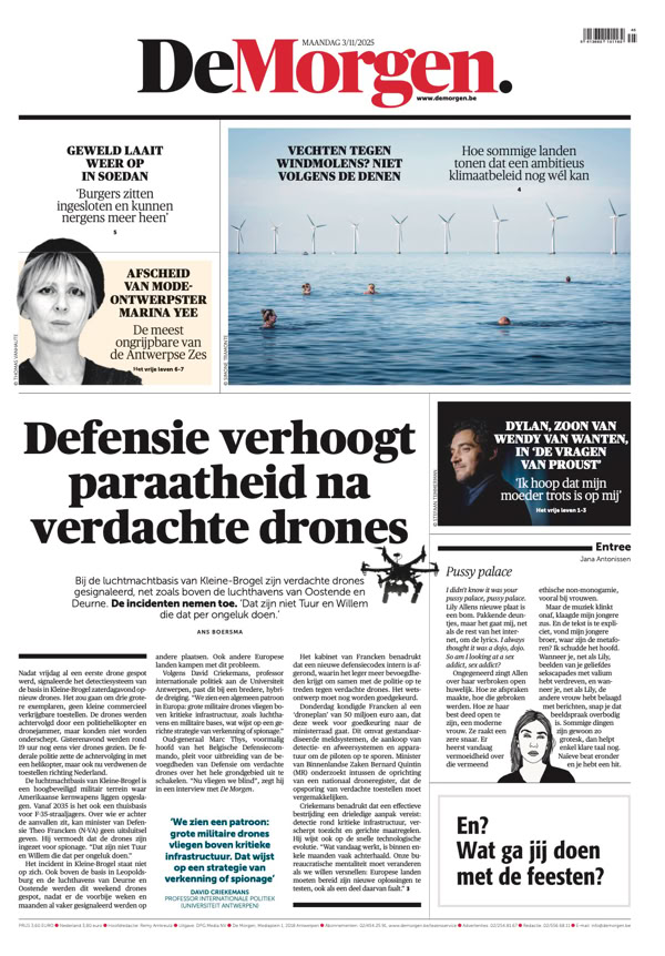 • Nuée de drones espions dans le ciel belge “On doit se préparer à une guerre des drones” p. 4