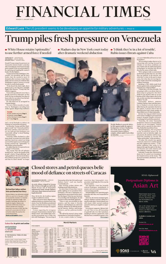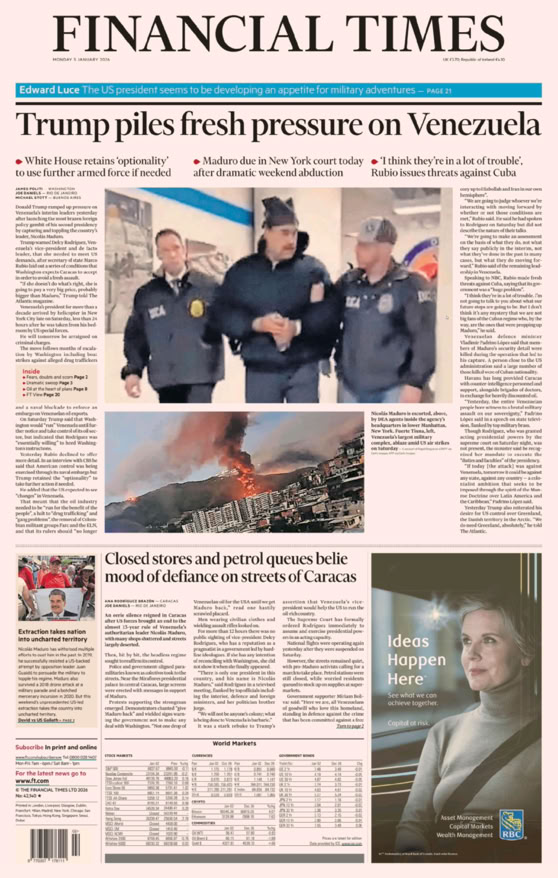 • Vénézuela : le président Maduro capturé Le coup de force de Trump p. 2 - 3