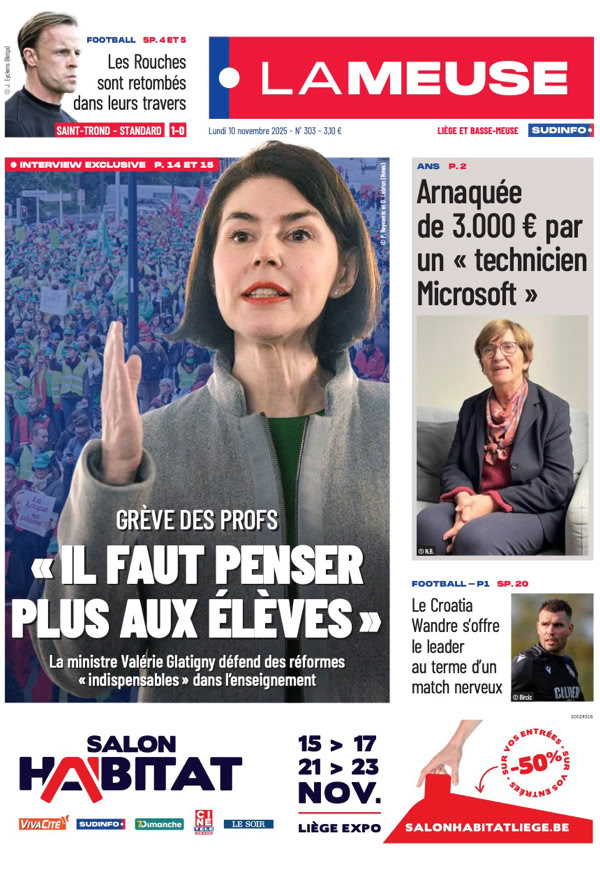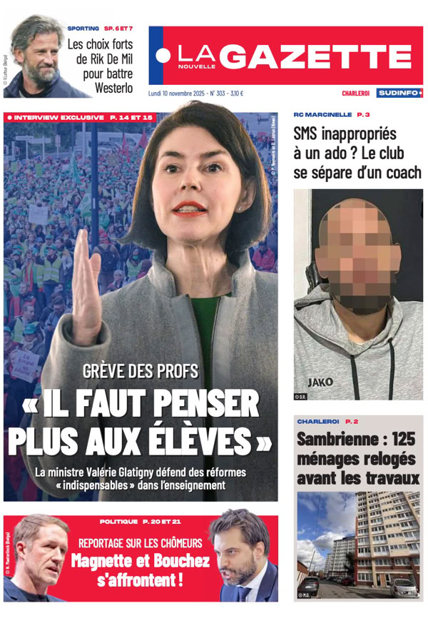 • Grève des profs : « Il faut penser plus aux élèves » La ministre Valérie Glatigny défend des réformes « indispensables » dans l’enseignement p. 14 - 15