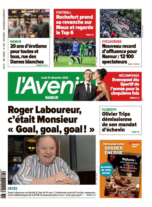 • Décès Roger Laboureur, voix légendaire du sport belge p. 11