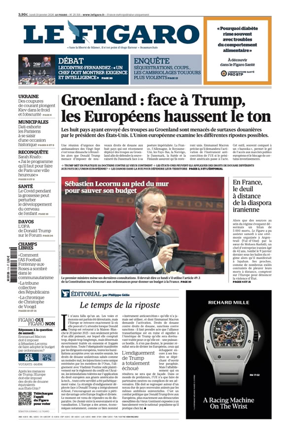 • Outrés par le chantage de Trump pour obtenir le Groenland, les Européens s’apprêtent à riposter p. 10 - 11
