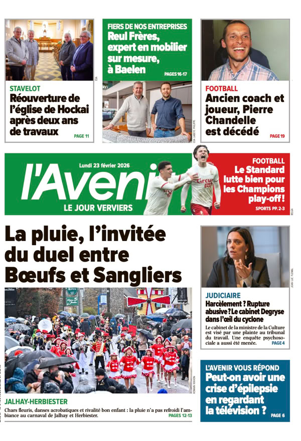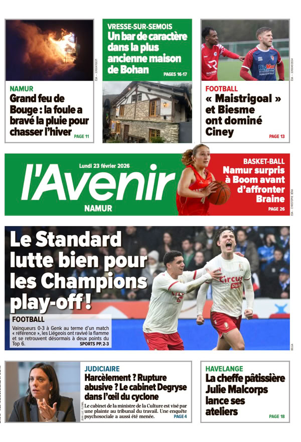 • Football Le Standard a le top 6 dans le viseur, Anderlecht efficace p. 16 & 17