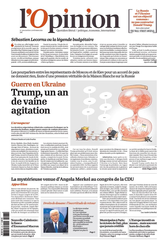 • Donald Trump affaibli avant son discours au Congrès Critiqué sur l’immigration, réprimandé par la Cour suprême et dans l'attente d'élections à l’automne, il doit prononcer son discours sur « l ’état de l’Union » ce mardi p. 2 - 3