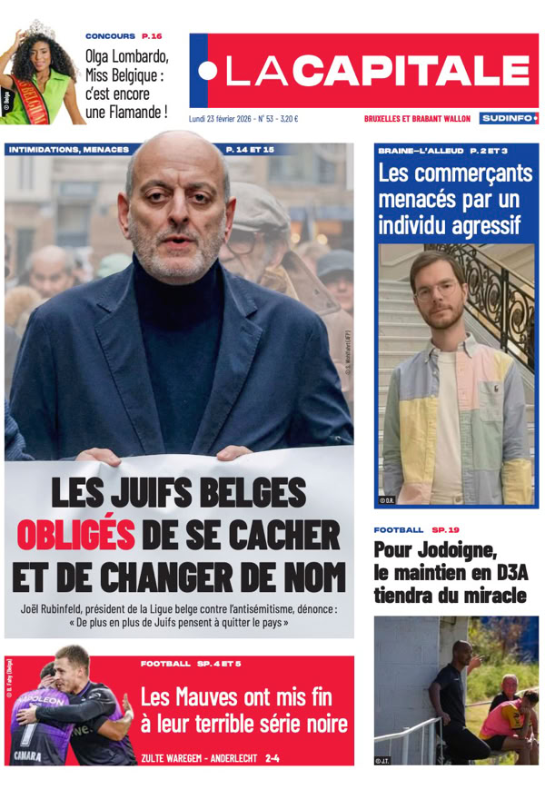 ET DE CHANGER DE NOM Joël Rubinfeld, président de la Ligue belge contre l’antisémitisme, dénonce : « De plus en plus de Juifs pensent à quitter le pays » p. 14 - 15
