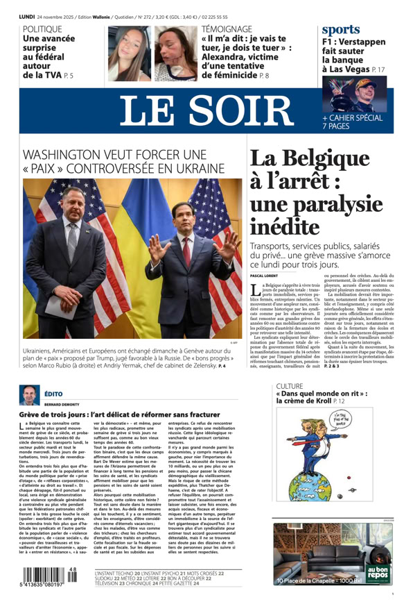 • Les patrons wallons évaluent à 300 millions le coût des trois jours de grève p. 4 - 5 & Édito p. 2