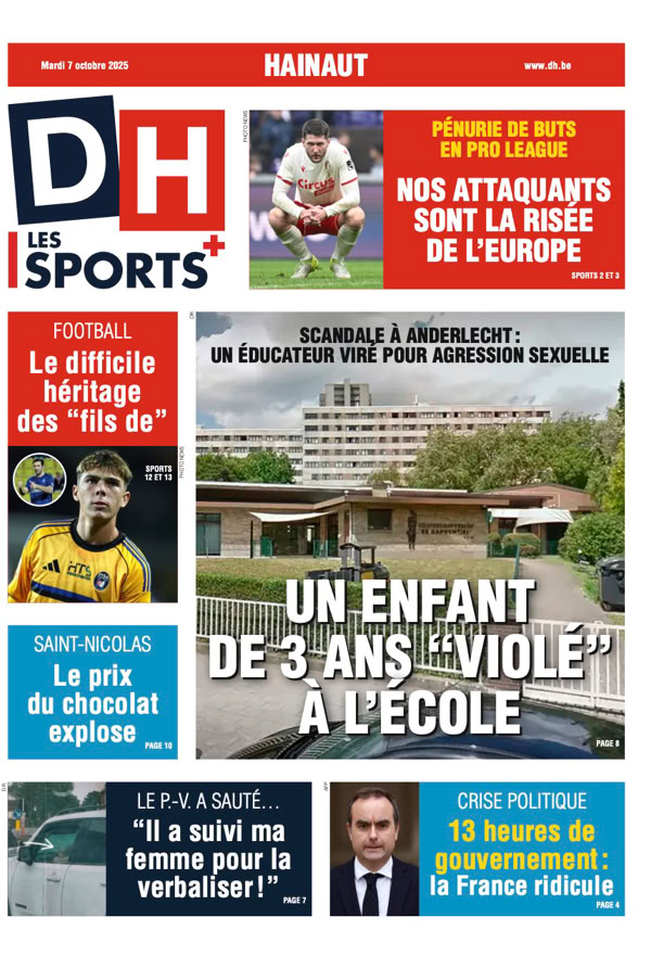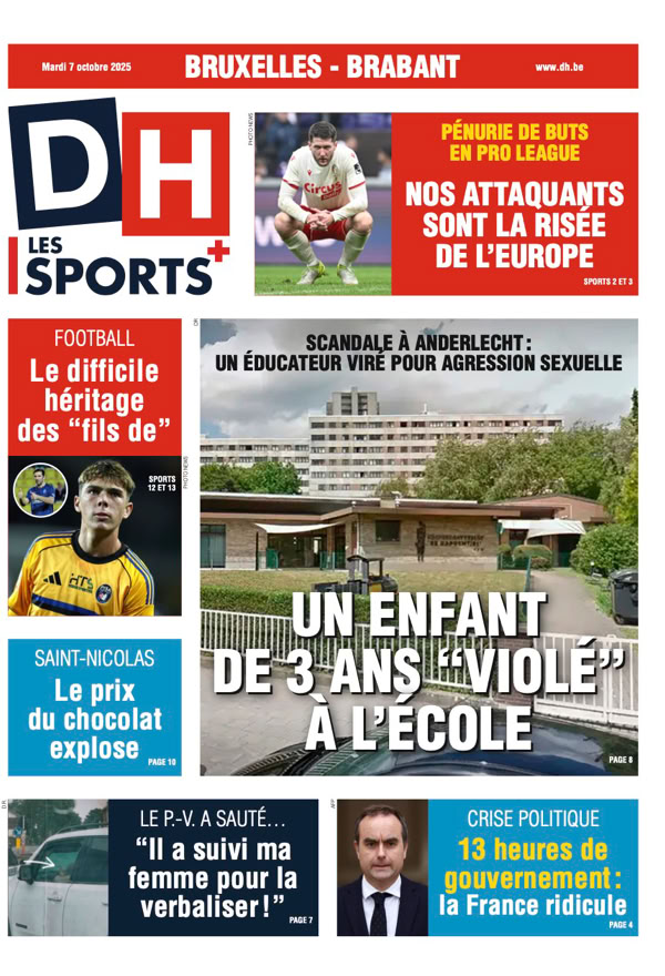 • Scandale à Anderlecht : un éducateur viré pour agression sexuelle Un enfant de 3 ans “violé” à l’école p. 8