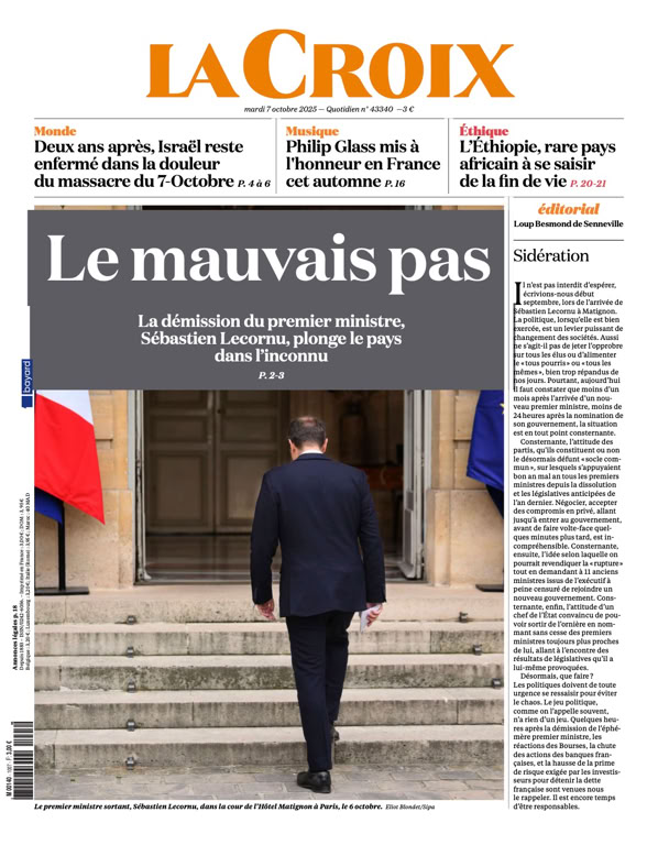 • Sébastien Lecornu, de la démission à la mission de la dernière chance p. 14-15 & Édito p. 2