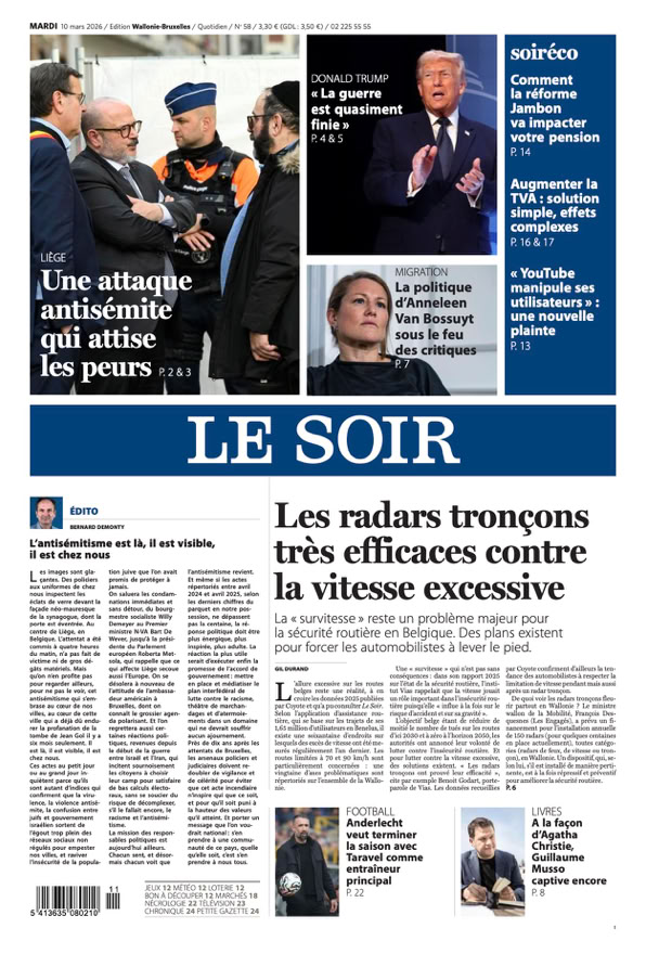• L’ombre du terrorisme plane sur l’explosion de la synagogue à Liège p. 4 et 5 & Édito p. 2