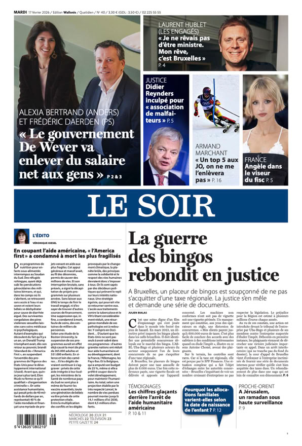 • La guerre des bingos rebondit en justice A Bruxelles, un placeur de bingos est soupçonné de ne pas s’acquitter d’une taxe régionale. La justice s’en mêle et demande une série de documents. p. 6