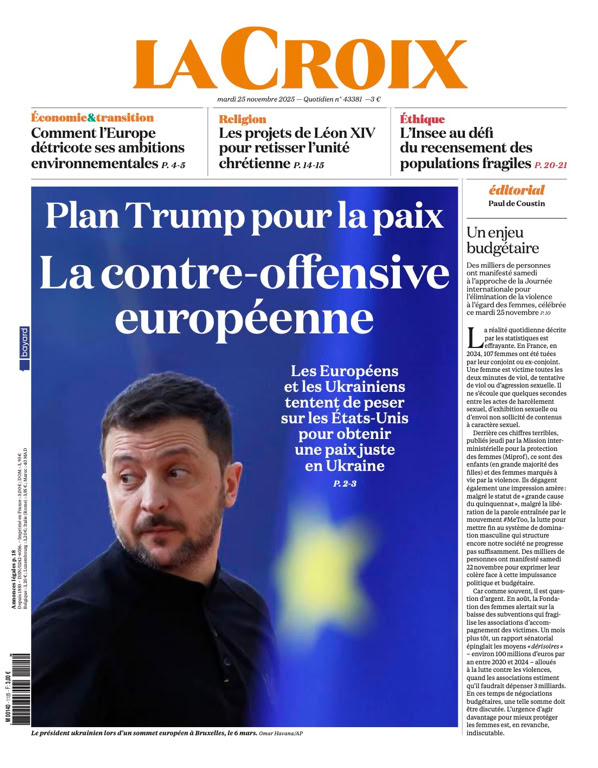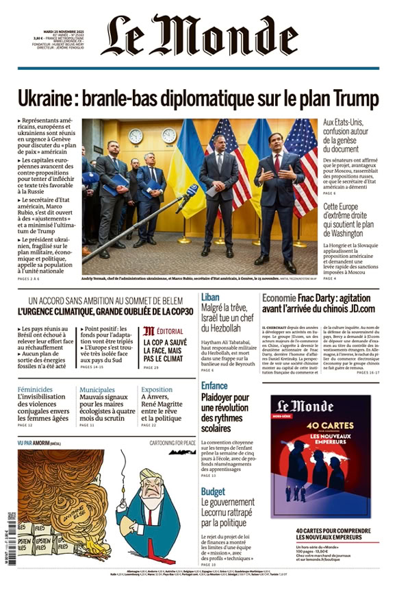 • Plan Trump pour l’Ukraine L’Europe tente de retrouver prise sur un processus qui lui échappe p. 9