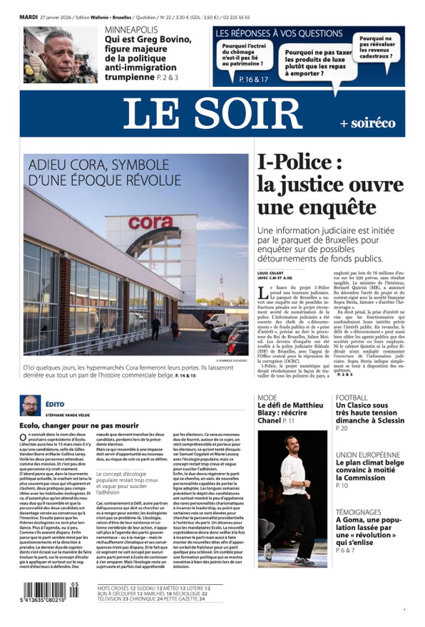 • I-Police : la justice ouvre une enquête Une information judiciaire est initiée par le parquet de Bruxelles pour enquêter sur de possibles détournements de fonds publics p. 2 & 3