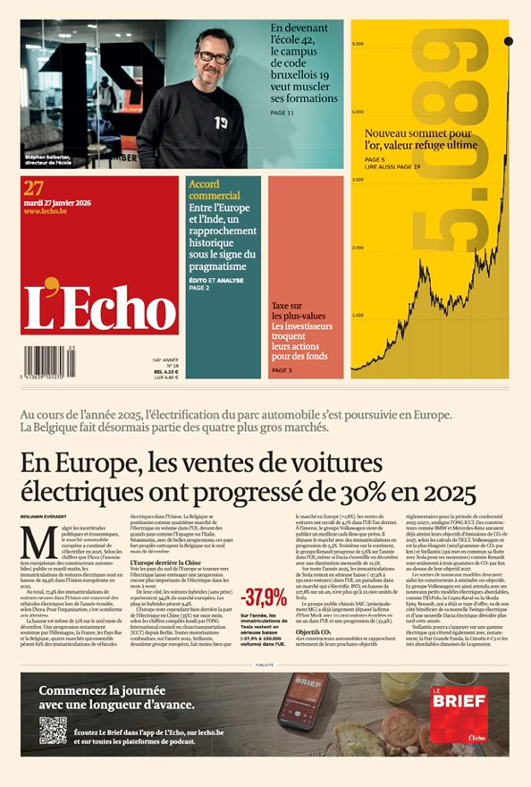 • En Europe, les ventes de voitures électriques ont progressé de 30% en 2025 Au cours de l’année 2025, l’électrification du parc automobile s’est poursuivie en Europe. La Belgique fait désormais partie des quatre plus gros marchés p. 1