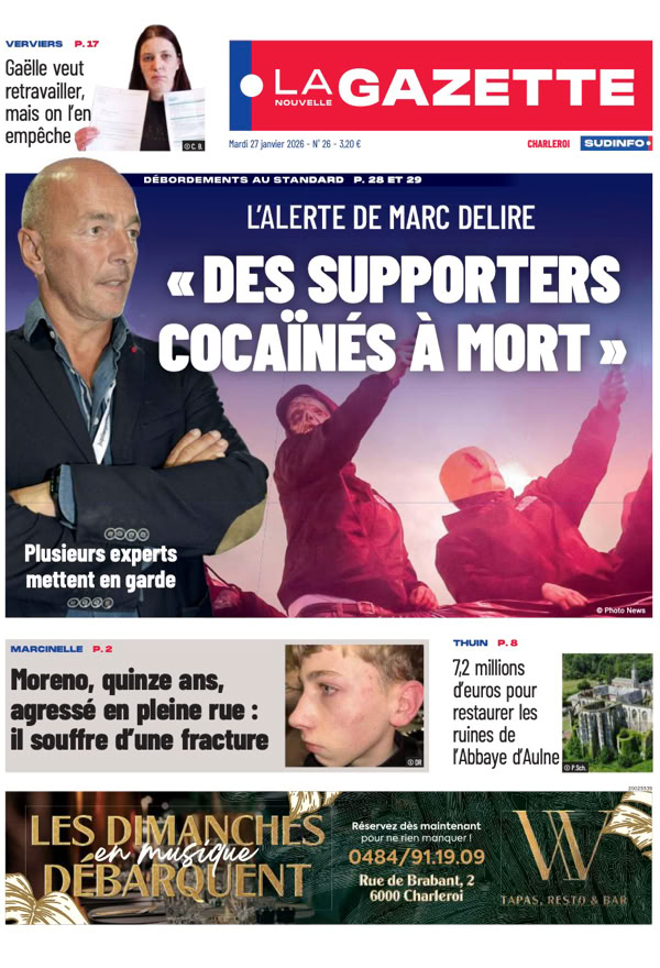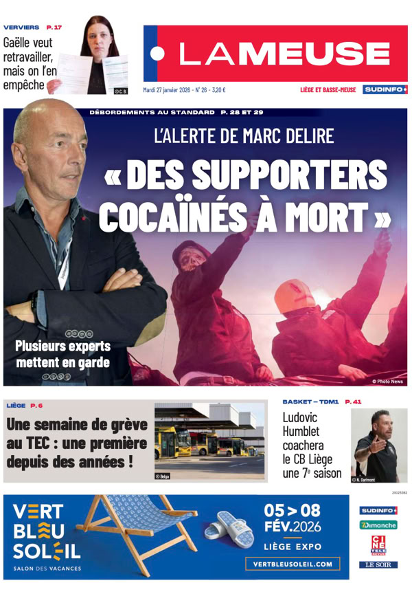 • Débordements au Standard L’alerte de Marc Delire « Des supporters cocagnes à mort » p. 28 - 29 + Anderlecht Pourquoi Besnik Hasi est maintenu à la tête des Mauves p. 30