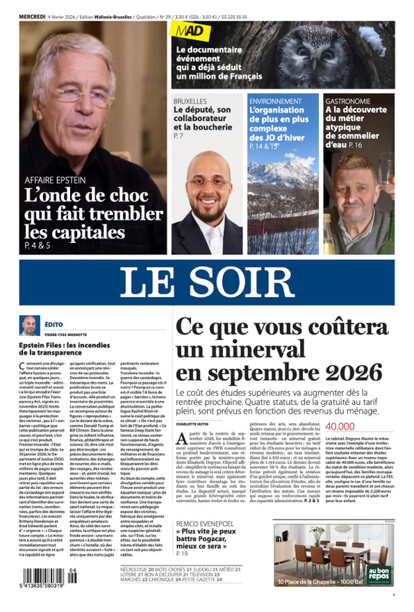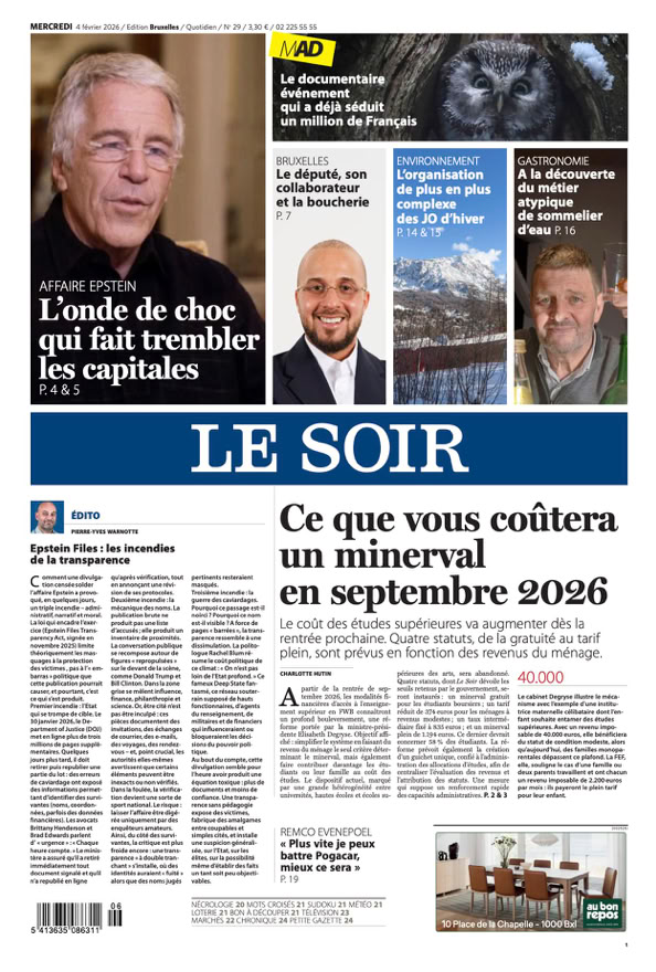 • Epstein Files : l’onde de choc s’étend à de nombreux pays européens p. 12 - 13 & Édito p. 2