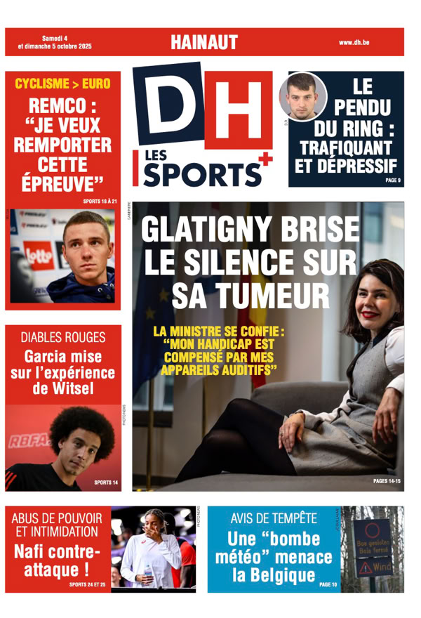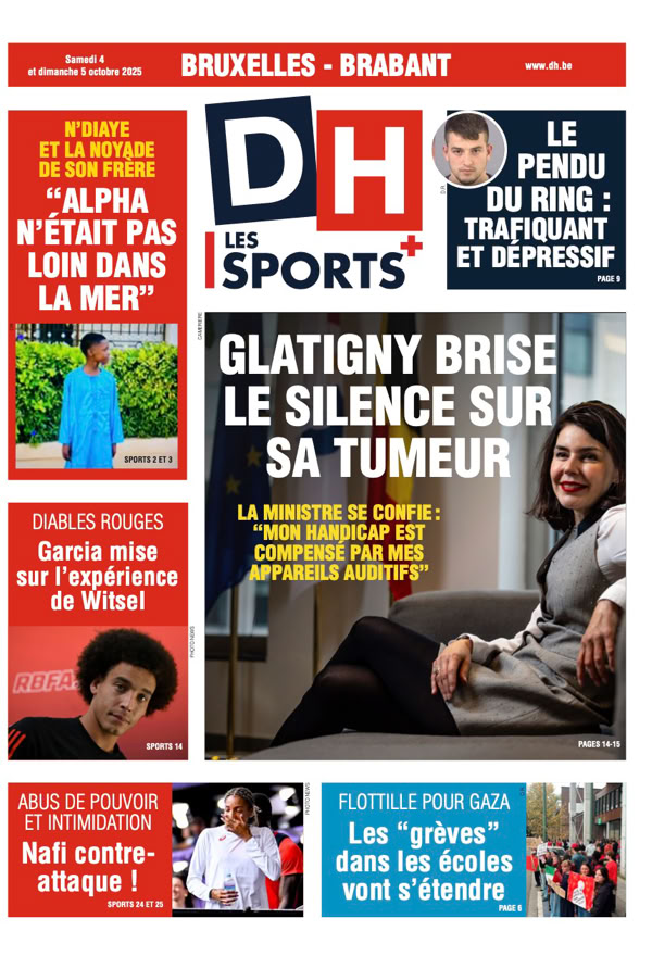 • Glatigny brise le silence sur sa tumeur La ministre se confie : “mon handicap est compensé par mes appareils auditifs” p. 14 - 15