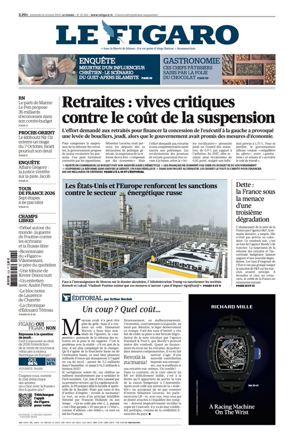 • Nicolas Sarkozy n’échappera pas à la prison, une première pour un ancien président p. 12 - 13 + Édito p. 2